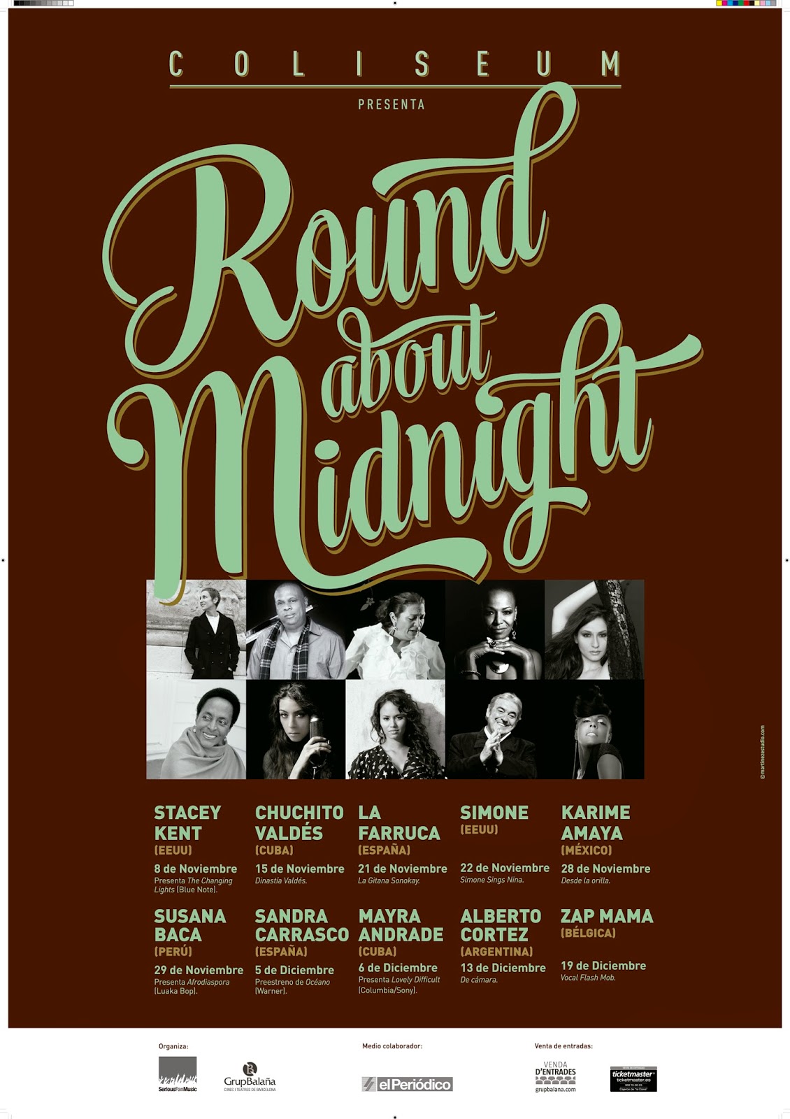 El brillo de la época dorada de Hollywood llega al Teatre Coliseum de Barcelona dela mano de Stacey Kent, Chuchito Valdés, La Farruca, Simone, Karime Amaya,Susana Baca, Sandra Carrasco, Mayra Andrade, Alberto Cortez y Zap Mama.